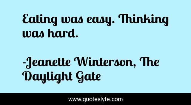 "Jeanette Winterson, The Daylight Gate Quotes." Quoteslyfe.com, 2025. Fri. 05 Dec. 2025. <https://www.quoteslyfe.com/quote/Eating-was-easy-Thinking-was-hard-55771>.