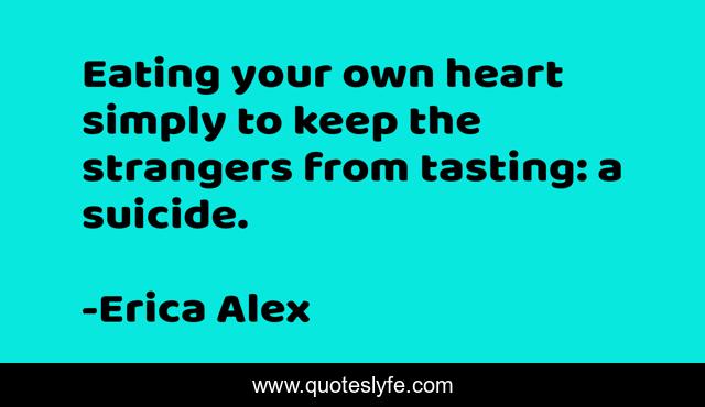 This page presents the quote "Eating your own heart simply to keep the strangers from tasting: a suicide.". Author of this quote is Erica Alex. This quote is about relationships, heart, love, art, affection,.