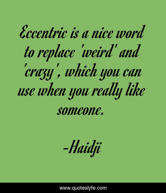 This page presents the quote "Eccentric is a nice word to replace 'weird' and 'crazy', which you can use when you really like someone.". Author of this quote is Haidji. This quote is about crazy, love, eccentric, haidji, quotes, harables, affection,.