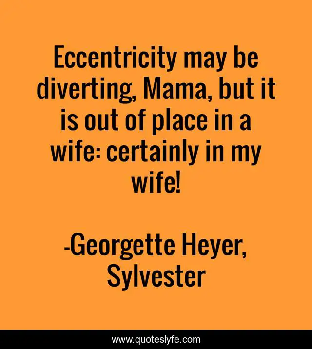 This page presents the quote "Eccentricity may be diverting, Mama, but it is out of place in a wife: certainly in my wife!". Author of this quote is Georgette Heyer, Sylvester. This quote is about eccentricity, expectations, wife,.