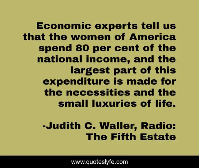 "Judith C. Waller, Radio: The Fifth Estate Quotes." Quoteslyfe.com, 2025. Sun. 07 Dec. 2025. <https://www.quoteslyfe.com/quote/Economic-experts-tell-us-that-the-women-209936>.