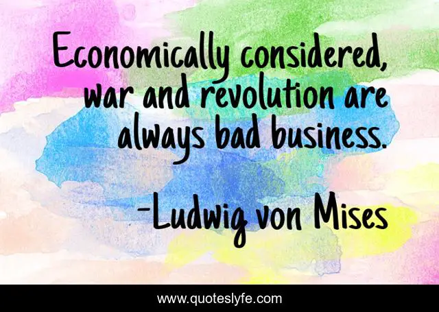 "Ludwig von Mises Quotes." Quoteslyfe.com, 2025. Mon. 08 Dec. 2025. <https://www.quoteslyfe.com/quote/Economically-considered-war-and-revolution-are-always-309403>.