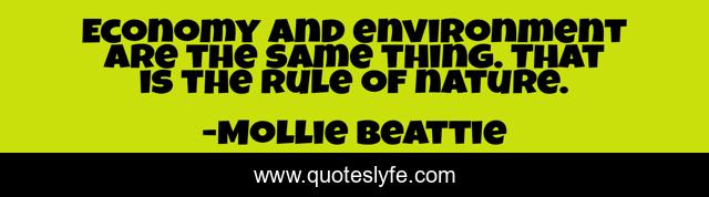 This page presents the quote "Economy and environment are the same thing. That is the rule of nature.". Author of this quote is Mollie Beattie. This quote is about environment, economy,.