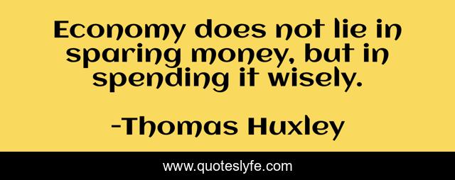 This page presents the quote "Economy does not lie in sparing money, but in spending it wisely.". Author of this quote is Thomas Huxley. This quote is about lie, wisely, economy,.