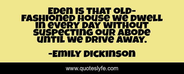 This page presents the quote "Eden is that old-fashioned house we dwell in every day without suspecting our abode until we drive away.". Author of this quote is Emily Dickinson. .