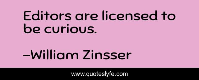This page presents the quote "Editors are licensed to be curious.". Author of this quote is William Zinsser. This quote is about curiosity, writing,.