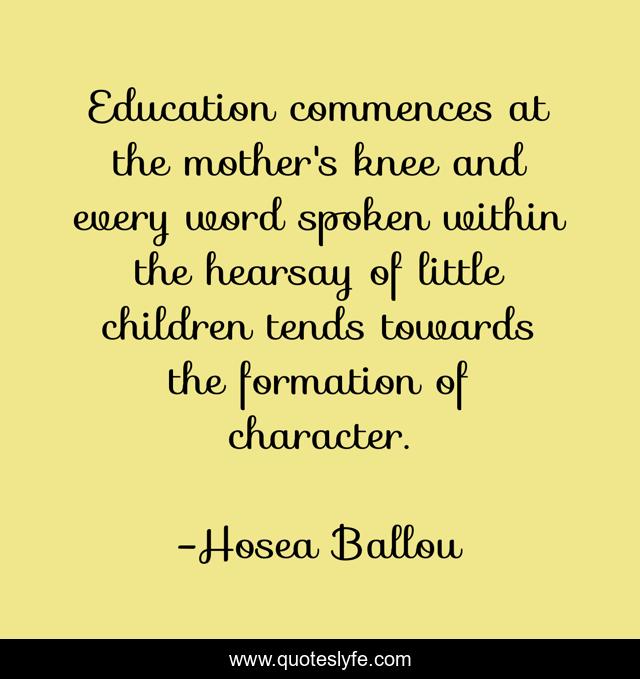 "Hosea Ballou Quotes." Quoteslyfe.com, 2025. Sat. 06 Dec. 2025. <https://www.quoteslyfe.com/quote/Education-commences-at-the-mother-s-knee-263649>.