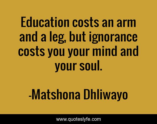 "Matshona Dhliwayo Quotes." Quoteslyfe.com, 2025. Sat. 06 Dec. 2025. <https://www.quoteslyfe.com/quote/Education-costs-an-arm-and-a-leg-98202>.