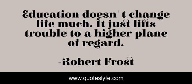 This page presents the quote "Education doesn't change life much. It just lifts trouble to a higher plane of regard.". Author of this quote is Robert Frost. This quote is about life, trouble, change,.