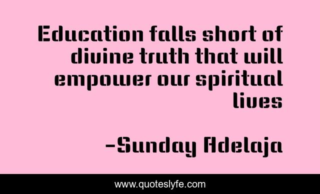 This page presents the quote "Education falls short of divine truth that will empower our spiritual lives". Author of this quote is Sunday Adelaja. This quote is about spiritual, divine, education, truth, falls,.