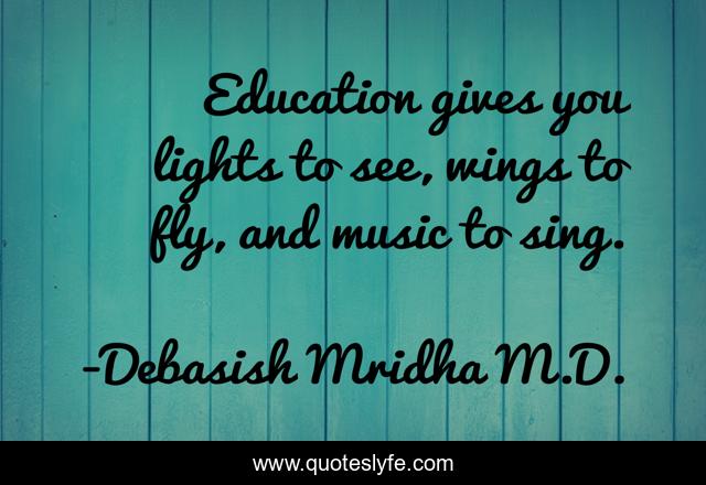 This page presents the quote "Education gives you lights to see, wings to fly, and music to sing.". Author of this quote is Debasish Mridha M.D.. This quote is about education-gives-you, philosophy, debasish-mridha, music-to-sing, quotes, inspirational, enthusiasm, wings-to-fly, education,.