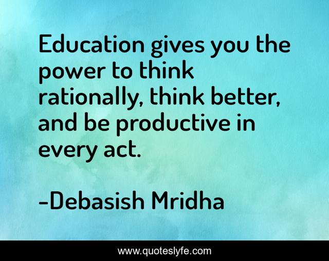 This page presents the quote "Education gives you the power to think rationally, think better, and be productive in every act.". Author of this quote is Debasish Mridha. This quote is about philosophy, debasish-mridha, think-rationally, be-productive, quotes, inspirational, enthusiasm, education, debasish-mridha-m-d,.