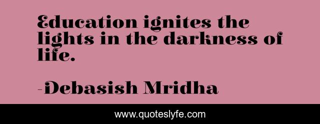 This page presents the quote "Education ignites the lights in the darkness of life.". Author of this quote is Debasish Mridha. This quote is about darkness-of-life, philosophy, debasish-mridha, quotes, debasish-mridha-md, inspirational, education-ignites, enthusiasm, education,.