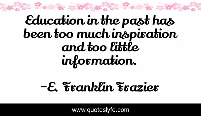 This page presents the quote "Education in the past has been too much inspiration and too little information.". Author of this quote is E. Franklin Frazier. This quote is about past, information,.