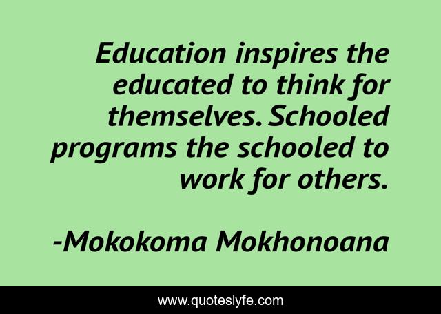 "Mokokoma Mokhonoana Quotes." Quoteslyfe.com, 2025. Mon. 08 Dec. 2025. <https://www.quoteslyfe.com/quote/Education-inspires-the-educated-to-think-for-197957>.