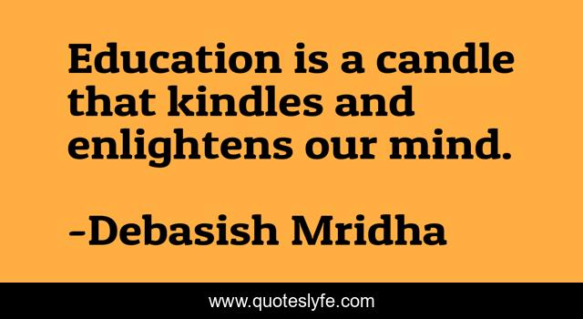 This page presents the quote "Education is a candle that kindles and enlightens our mind.". Author of this quote is Debasish Mridha. This quote is about mridha, philosophy, debasish-mridha, enlightens-our-mind, education, education-is-a-candle, inspiration,.