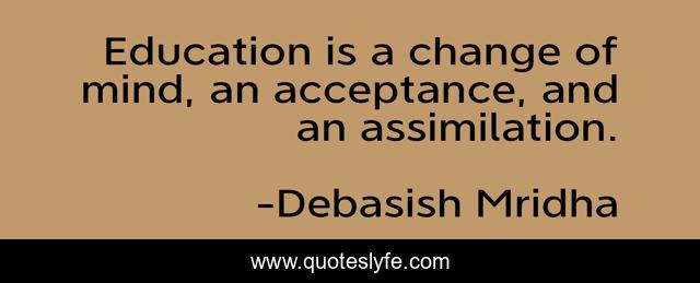 This page presents the quote "Education is a change of mind, an acceptance, and an assimilation.". Author of this quote is Debasish Mridha. This quote is about philosophy, change-of-mind, acceptance, debasish-mridha, assimilation, quotes, inspirational, enthusiasm, education,.