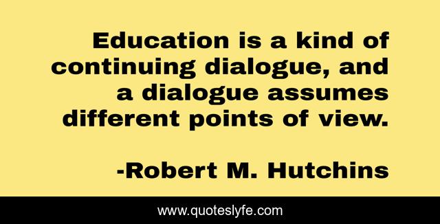 This page presents the quote "Education is a kind of continuing dialogue, and a dialogue assumes different points of view.". Author of this quote is Robert M. Hutchins. This quote is about kind, dialogue, view,.