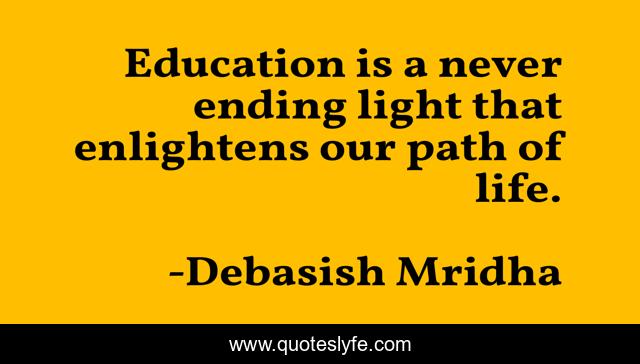 This page presents the quote "Education is a never ending light that enlightens our path of life.". Author of this quote is Debasish Mridha. This quote is about path-of-life, philosophy, never-ending-light, debasish-mridha, quotes, inspirational, enthusiasm, education, debasish-mridha-m-d,.