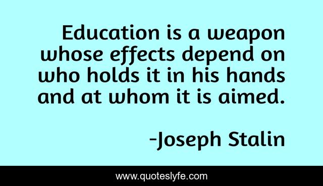 This page presents the quote "Education is a weapon whose effects depend on who holds it in his hands and at whom it is aimed.". Author of this quote is Joseph Stalin. This quote is about weapon, depend, hands,.