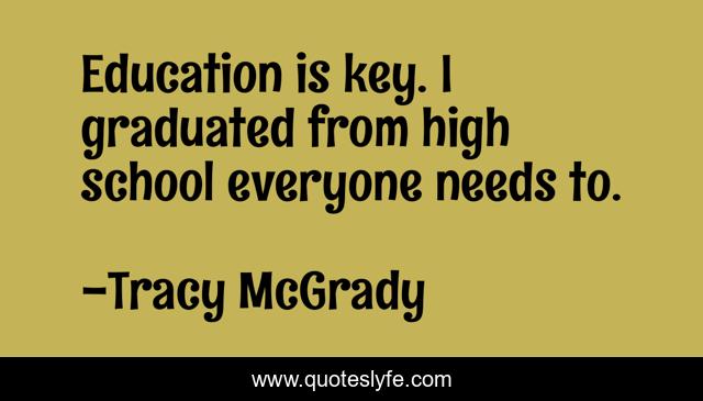 This page presents the quote "Education is key. I graduated from high school everyone needs to.". Author of this quote is Tracy McGrady. This quote is about school, high school, key,.