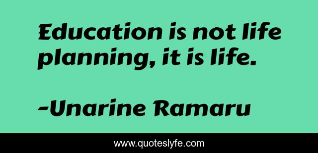 This page presents the quote "Education is not life planning, it is life.". Author of this quote is Unarine Ramaru. This quote is about planning, life, success, thinking, future, education,.
