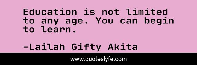 This page presents the quote "Education is not limited to any age. You can begin to learn.". Author of this quote is Lailah Gifty Akita. This quote is about education, self-improvement, learning,.