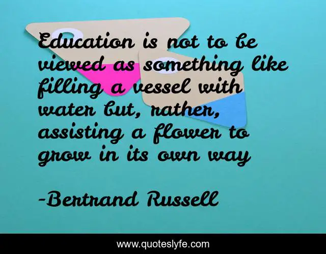 This page presents the quote "Education is not to be viewed as something like filling a vessel with water but, rather, assisting a flower to grow in its own way". Author of this quote is Bertrand Russell. .