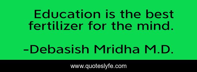 This page presents the quote "Education is the best fertilizer for the mind.". Author of this quote is Debasish Mridha M.D.. This quote is about fertilizer-for-the-mind, debasish, mridha, philosophy, debasish-mridha, quotes, inspirational, enthusiasm, education,.
