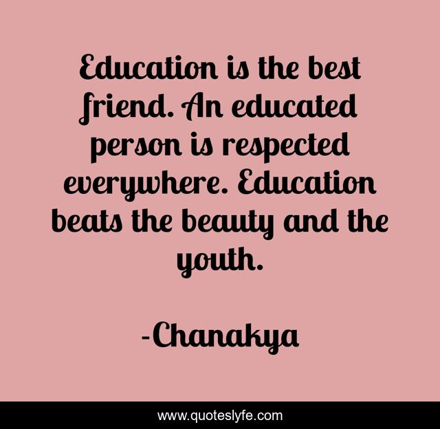 This page presents the quote "Education is the best friend. An educated person is respected everywhere. Education beats the beauty and the youth.". Author of this quote is Chanakya. This quote is about education, beauty,.