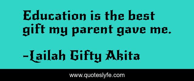 This page presents the quote "Education is the best gift my parent gave me.". Author of this quote is Lailah Gifty Akita. This quote is about parents-and-children, educational, educational-philosophy, parent, educated-people, educational-idea, parenting, child, learn-advice,.