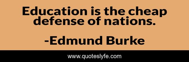 This page presents the quote "Education is the cheap defense of nations.". Author of this quote is Edmund Burke. This quote is about defense, cheap, nations,.