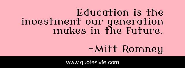 "Mitt Romney Quotes." Quoteslyfe.com, 2025. Sat. 06 Dec. 2025. <https://www.quoteslyfe.com/quote/Education-is-the-investment-our-generation-makes-322298>.