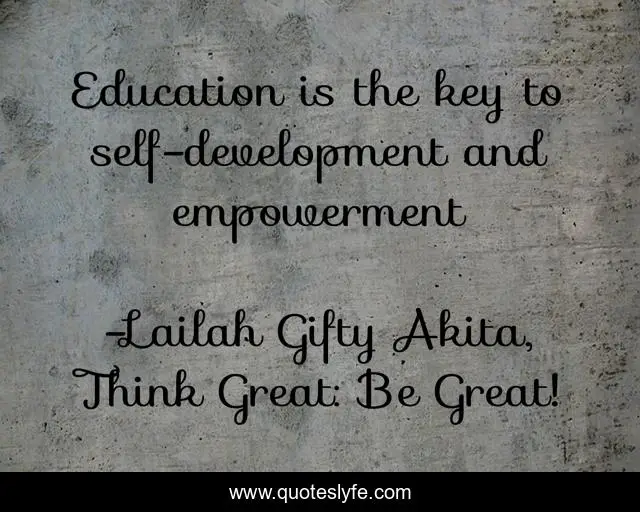 "Lailah Gifty Akita, Think Great: Be Great! Quotes." Quoteslyfe.com, 2025. Fri. 05 Dec. 2025. <https://www.quoteslyfe.com/quote/Education-is-the-key-to-self-development-102711>.