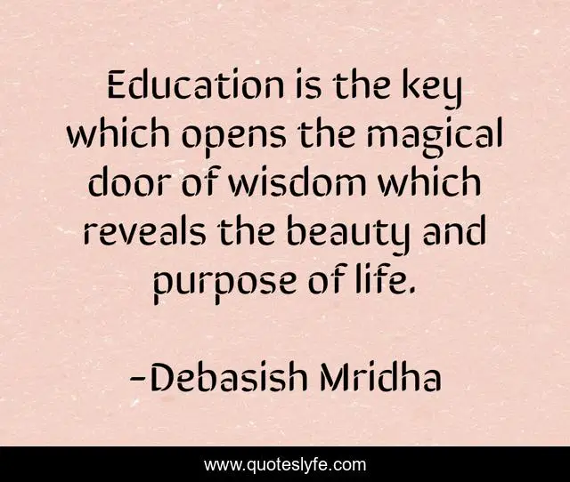 This page presents the quote "Education is the key which opens the magical door of wisdom which reveals the beauty and purpose of life.". Author of this quote is Debasish Mridha. This quote is about magical-door-of-wisdom, beauty, mridha, philosophy, debasish-mridha, wisdom, education-is-the-key, education, purpose-of-life,.