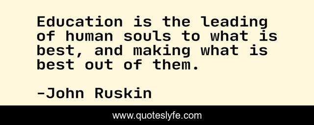 This page presents the quote "Education is the leading of human souls to what is best, and making what is best out of them.". Author of this quote is John Ruskin. This quote is about leading, best, human,.