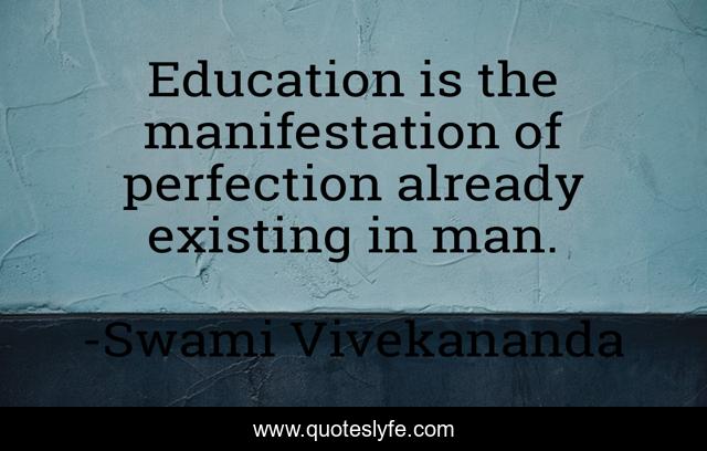 This page presents the quote "Education is the manifestation of perfection already existing in man.". Author of this quote is Swami Vivekananda. This quote is about education, swami-vivekananda,.