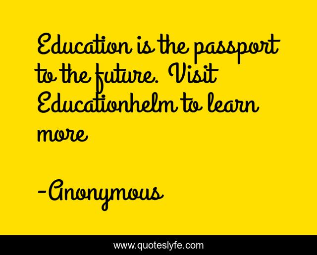This page presents the quote "Education is the passport to the future. Visit Educationhelm to learn more". Author of this quote is Anonymous. This quote is about positive, confidence, motivational, optimistic,.