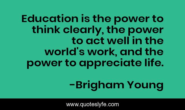 This page presents the quote "Education is the power to think clearly, the power to act well in the world's work, and the power to appreciate life.". Author of this quote is Brigham Young. This quote is about education, learning,.