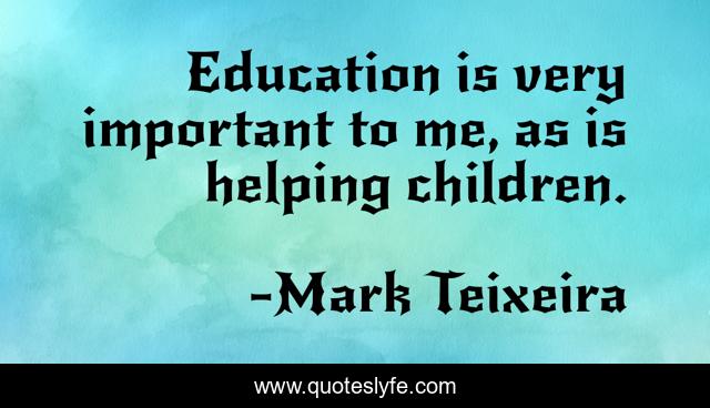 This page presents the quote "Education is very important to me, as is helping children.". Author of this quote is Mark Teixeira. This quote is about me, important, children,.