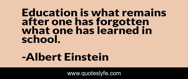 This page presents the quote "Education is what remains after one has forgotten what one has learned in school.". Author of this quote is Albert Einstein. This quote is about school, education, forgotten,.