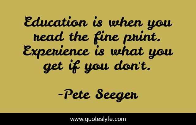 This page presents the quote "Education is when you read the fine print. Experience is what you get if you don't.". Author of this quote is Pete Seeger. This quote is about fine, experience,.