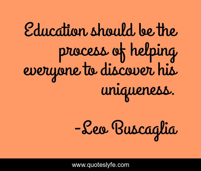 This page presents the quote "Education should be the process of helping everyone to discover his uniqueness.". Author of this quote is Leo Buscaglia. .