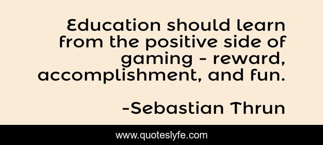 This page presents the quote "Education should learn from the positive side of gaming - reward, accomplishment, and fun.". Author of this quote is Sebastian Thrun. This quote is about fun, education,.