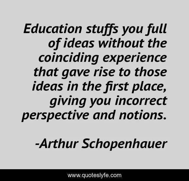 This page presents the quote "Education stuffs you full of ideas without the coinciding experience that gave rise to those ideas in the first place, giving you incorrect perspective and notions.". Author of this quote is Arthur Schopenhauer. This quote is about education, perception,.