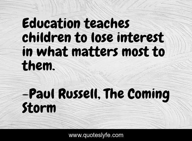"Paul Russell, The Coming Storm Quotes." Quoteslyfe.com, 2025. Sat. 06 Dec. 2025. <https://www.quoteslyfe.com/quote/Education-teaches-children-to-lose-interest-in-99983>.
