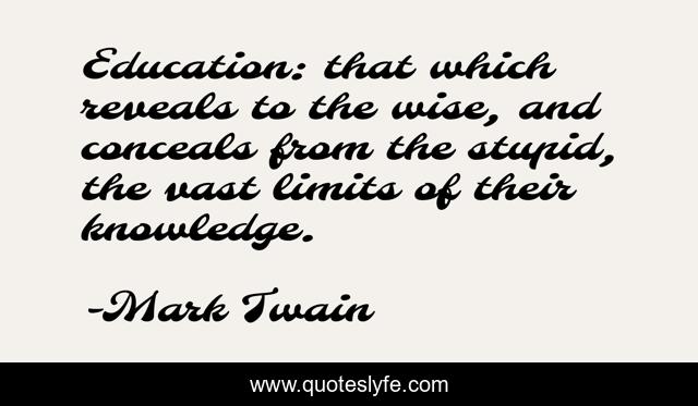 This page presents the quote "Education: that which reveals to the wise, and conceals from the stupid, the vast limits of their knowledge.". Author of this quote is Mark Twain. .
