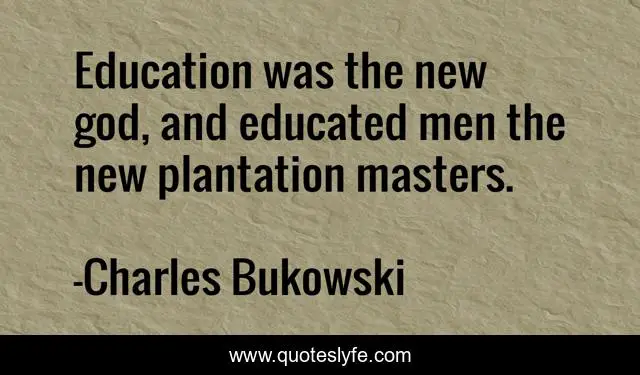 This page presents the quote "Education was the new god, and educated men the new plantation masters.". Author of this quote is Charles Bukowski. .
