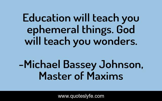 "Michael Bassey Johnson, Master of Maxims Quotes." Quoteslyfe.com, 2025. Sun. 07 Dec. 2025. <https://www.quoteslyfe.com/quote/Education-will-teach-you-ephemeral-things-God-72794>.