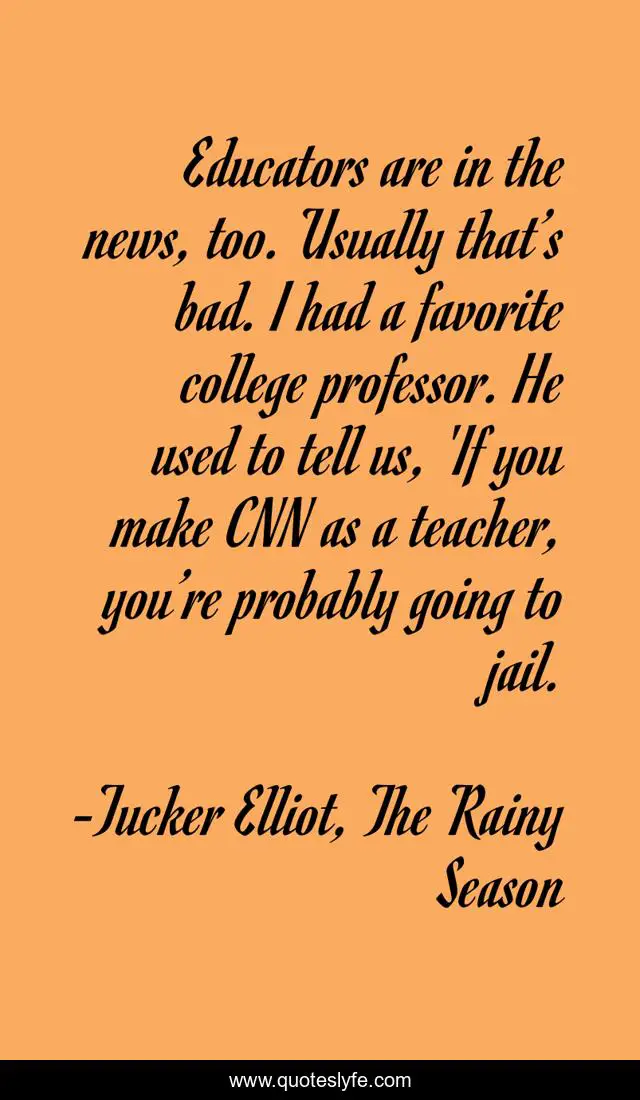 "Tucker Elliot, The Rainy Season Quotes." Quoteslyfe.com, 2025. Sat. 06 Dec. 2025. <https://www.quoteslyfe.com/quote/Educators-are-in-the-news-too-Usually-198635>.